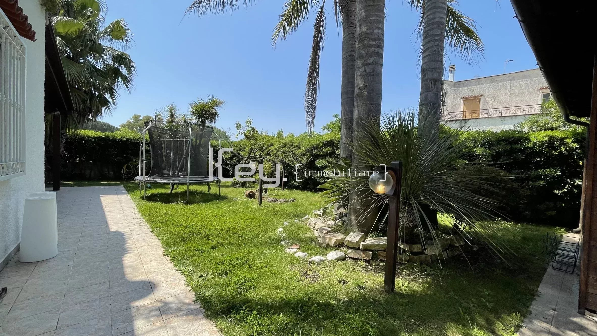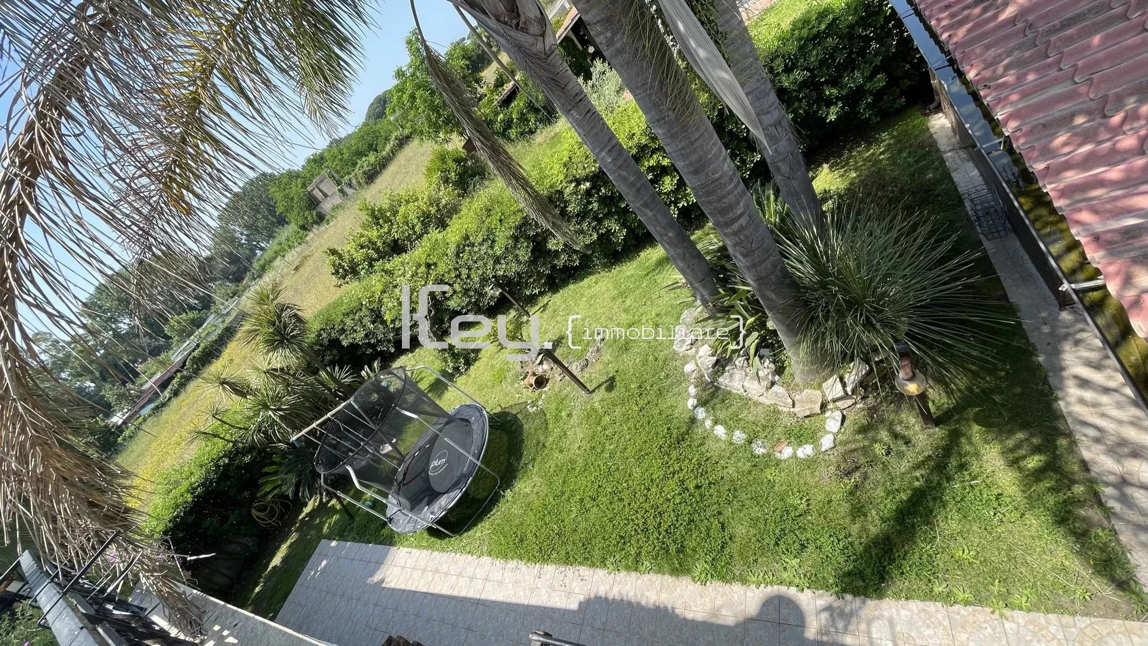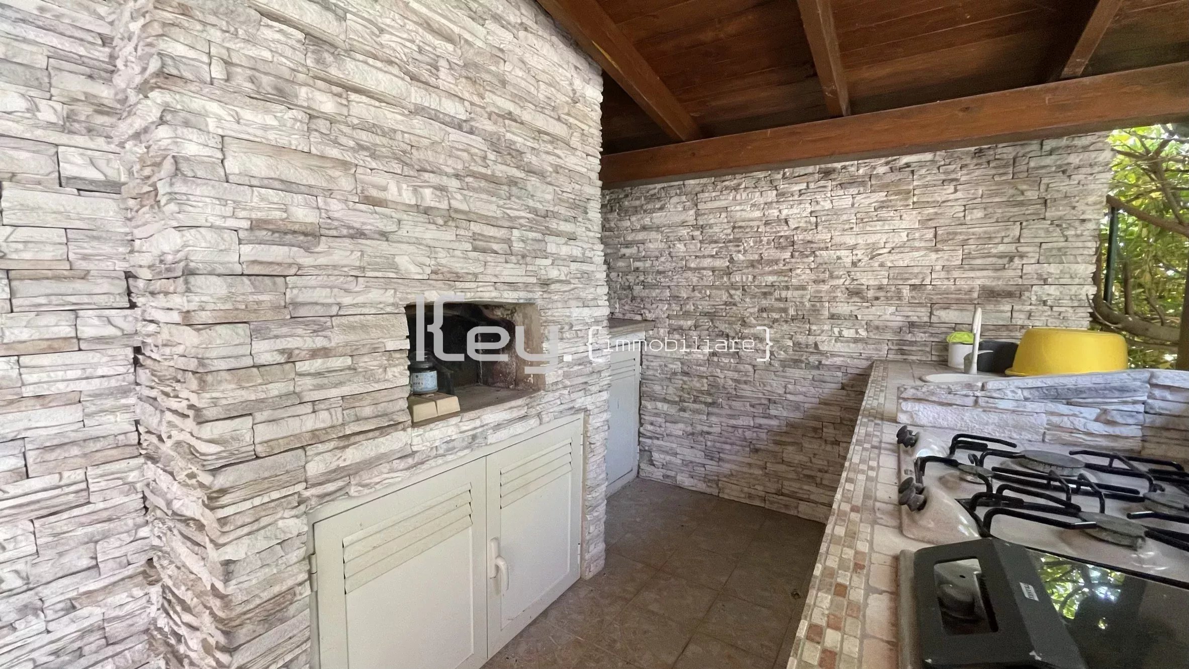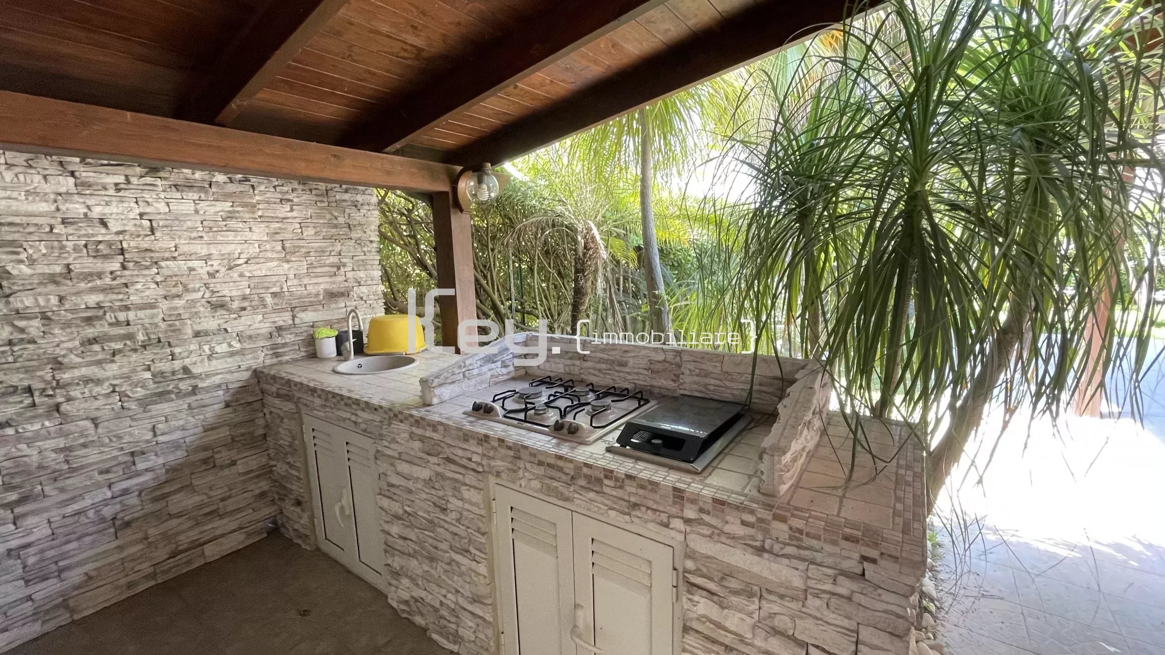 Rez-de-chaussée : séjour avec kitchenette, salle de bains, accès au jardin privé d'environ 350 m² avec véranda équipée.